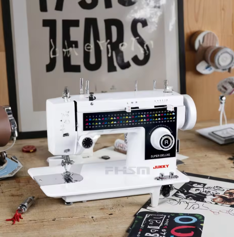 Machine à coudre électrique multifonctionnelle portable JUKKY 308 pour usage domestique, corps en acier simple, configuration à plateau plat, utilisée