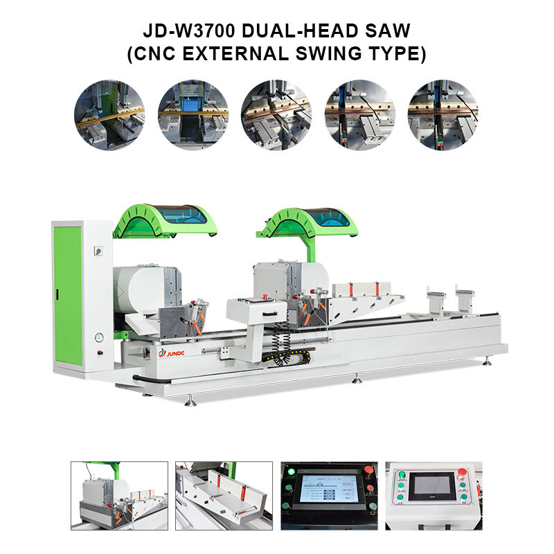 Équipement de fabrication de cadres de fenêtres et de portes JUNDE, machine de découpe CNC à double tête pour profilés PVC et aluminium, 45 et 90 degrés