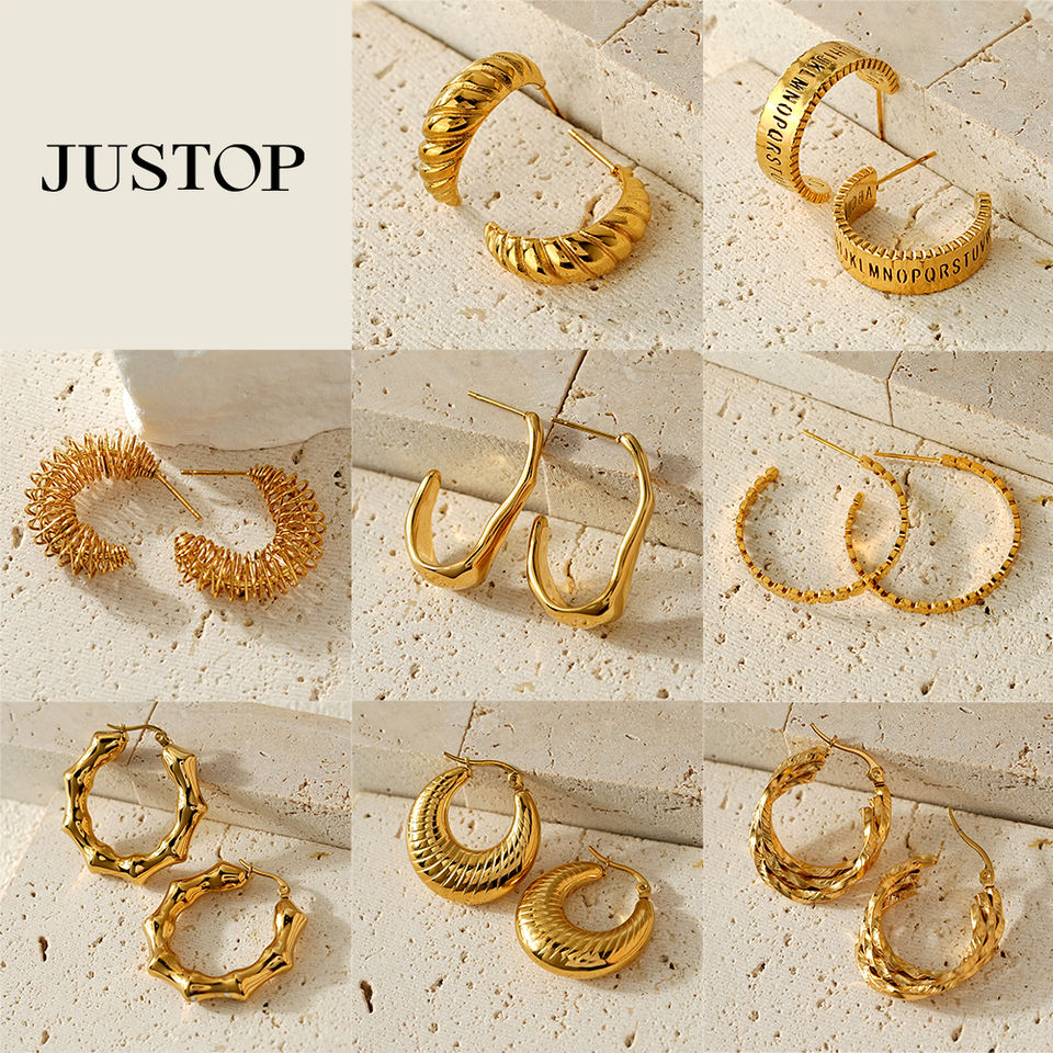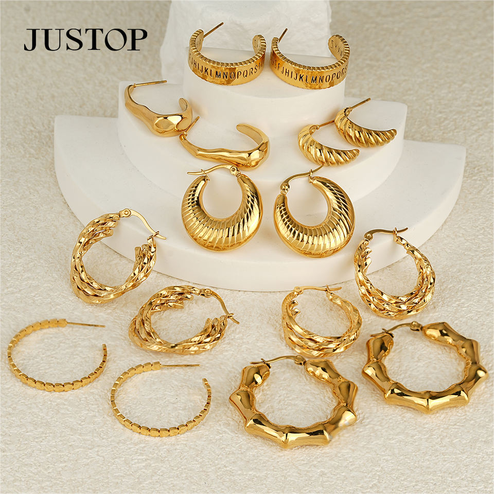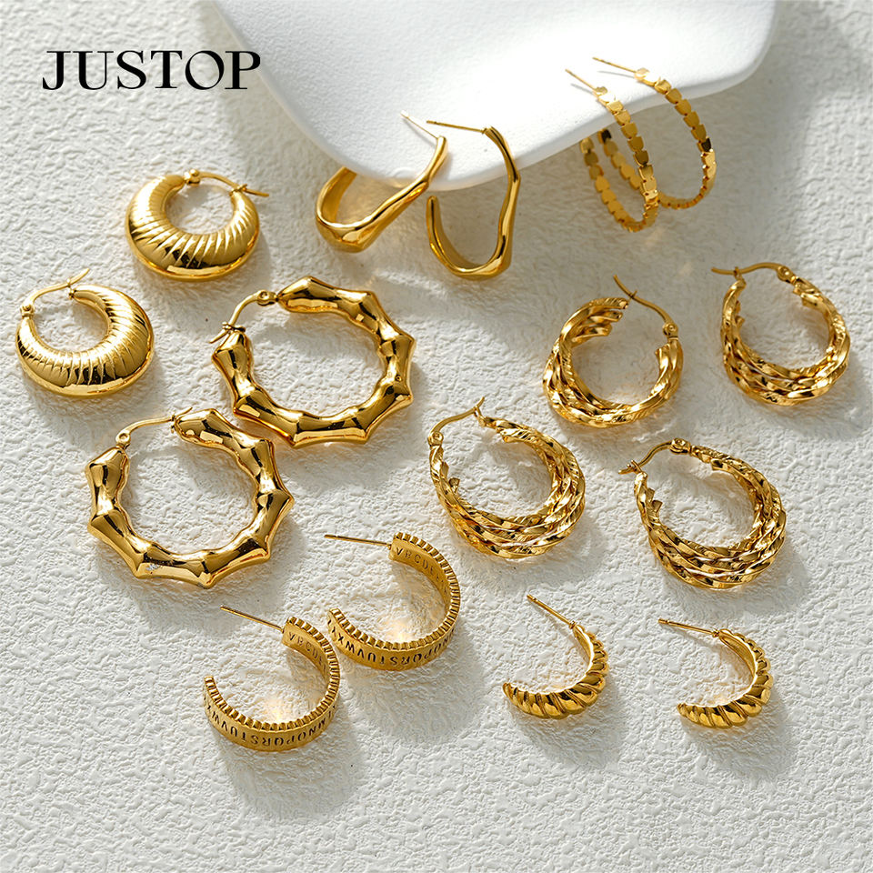 JUSTOP Spot Portfolio Ensemble de boucles d'oreilles en acier inoxydable résistant à l'eau, créoles épaisses plaquées or 18 carats, motif nœud, bijoux de mode tendance, inaltérables