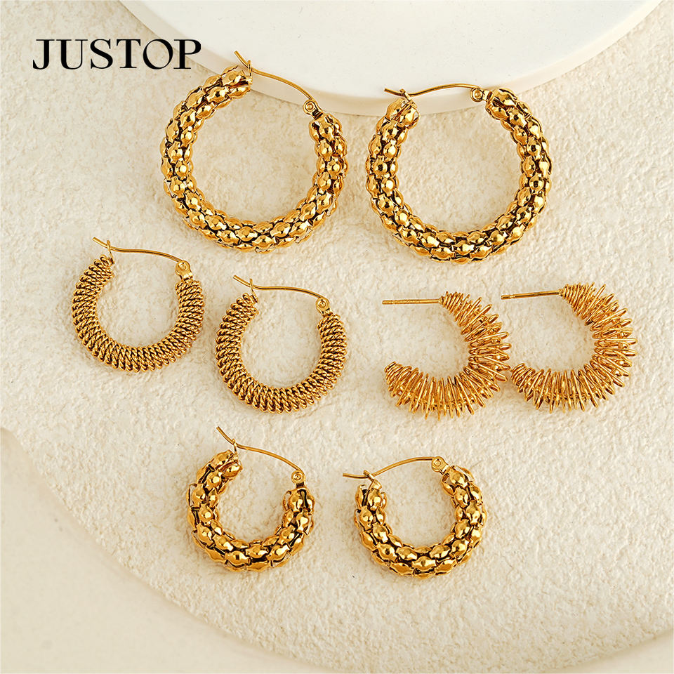 JUSTOP Spot Portfolio Ensemble de boucles d'oreilles en acier inoxydable résistant à l'eau, créoles épaisses plaquées or 18 carats, motif nœud, bijoux de mode tendance, inaltérables