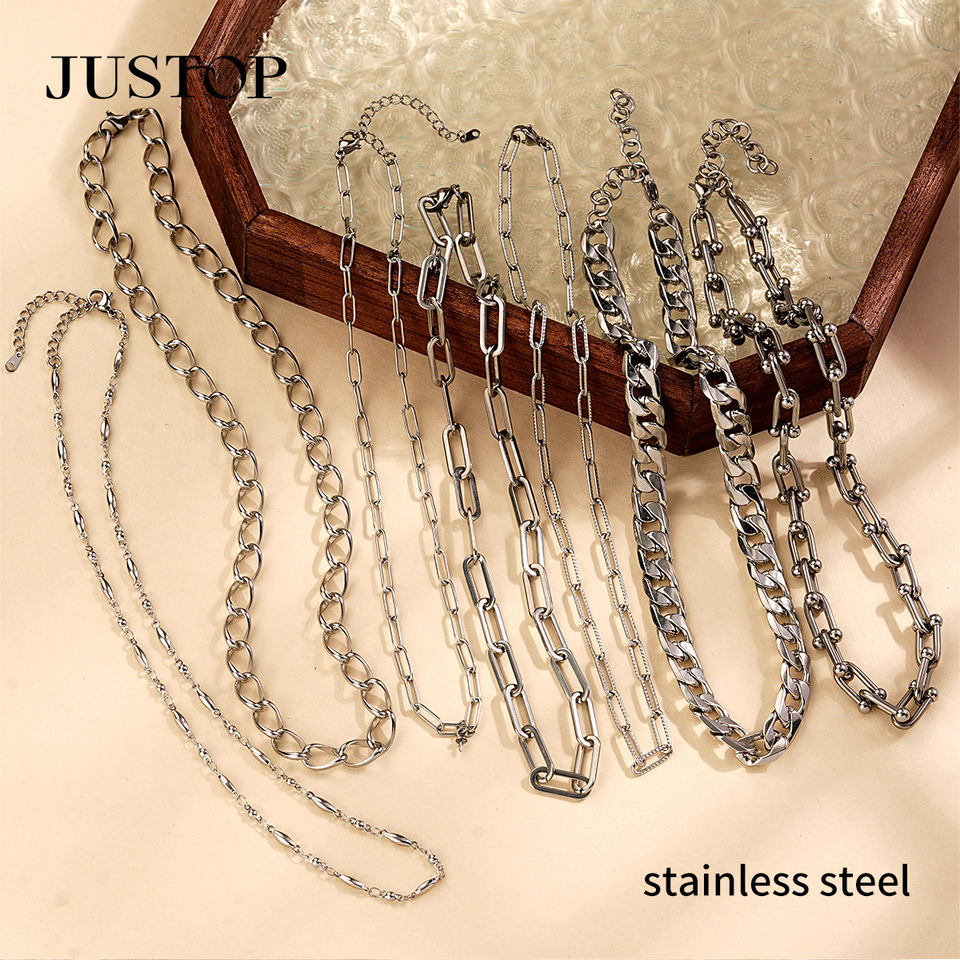 Collier pendentif unisexe JUSTOP en acier inoxydable plaqué or et argent, chaîne à maillons, style Europe et Amérique, OEM/ODM, tendance