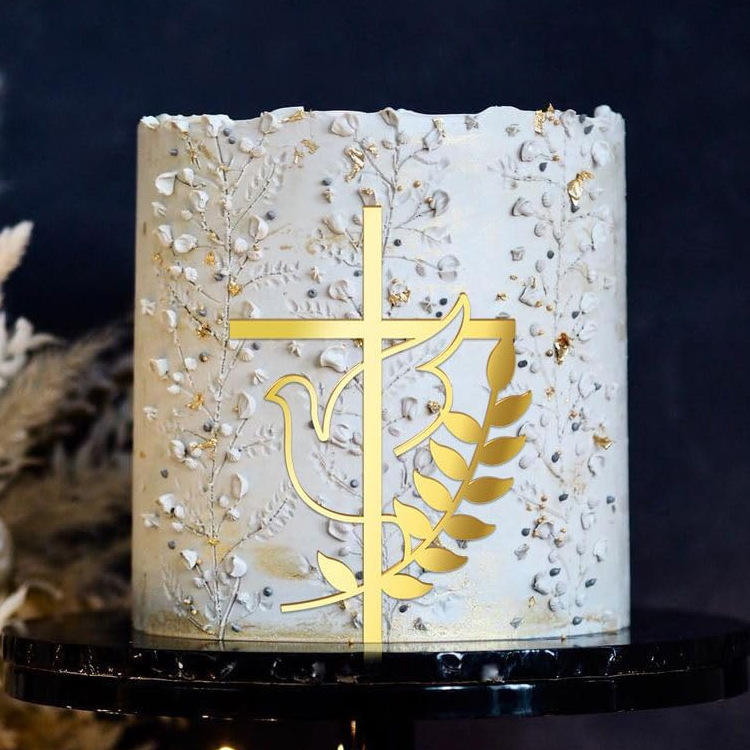 Décoration de gâteau JUXINDA avec colombe, nouvelle arrivée, style Ins, décorations de gâteau pour la première communion et design en croix, en acrylique