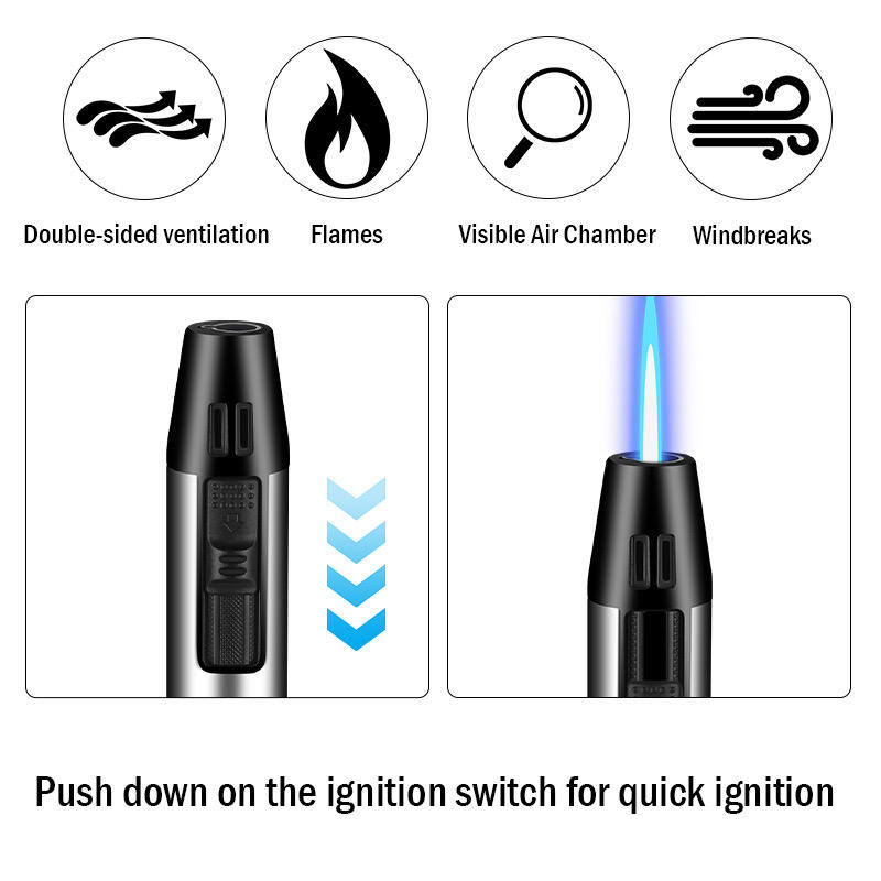 JX Mini briquet torche à gaz rechargeable au butane coupe-vent, briquet torche à flamme jet pour cigare, bougies, grils, cheminées, camping