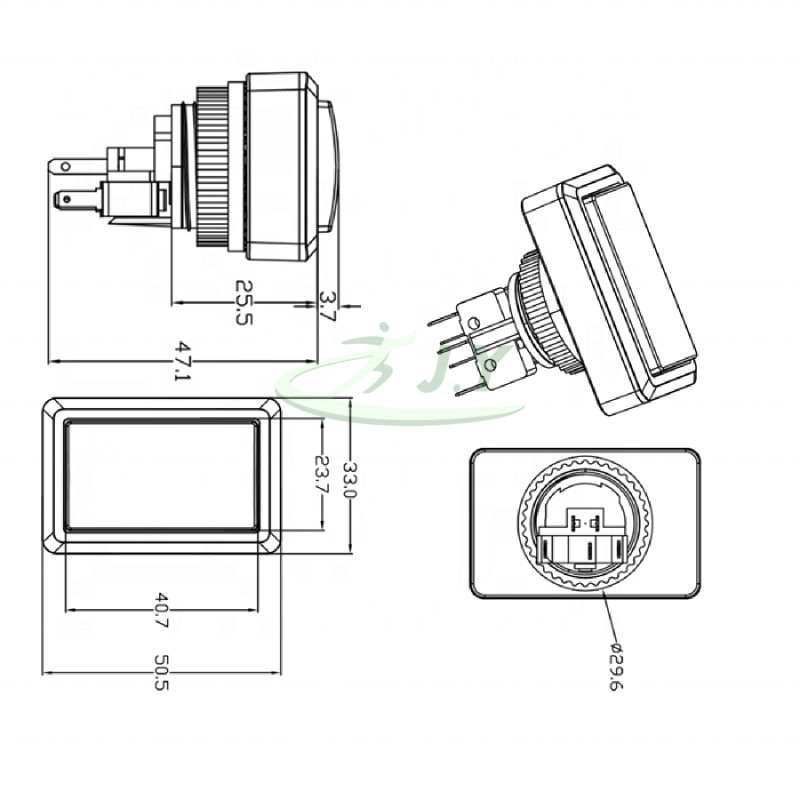 Bouton LED rectangulaire en plastique avec prise EU JY pour borne d'arcade et console de jeu vidéo