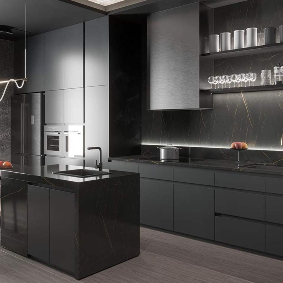 Ensemble de meubles de cuisine basiques multifonctionnels, modernes, écologiques et faciles à nettoyer, fabriqués à la main au Vietnam, par JY Project Custom, fournisseur de bois.