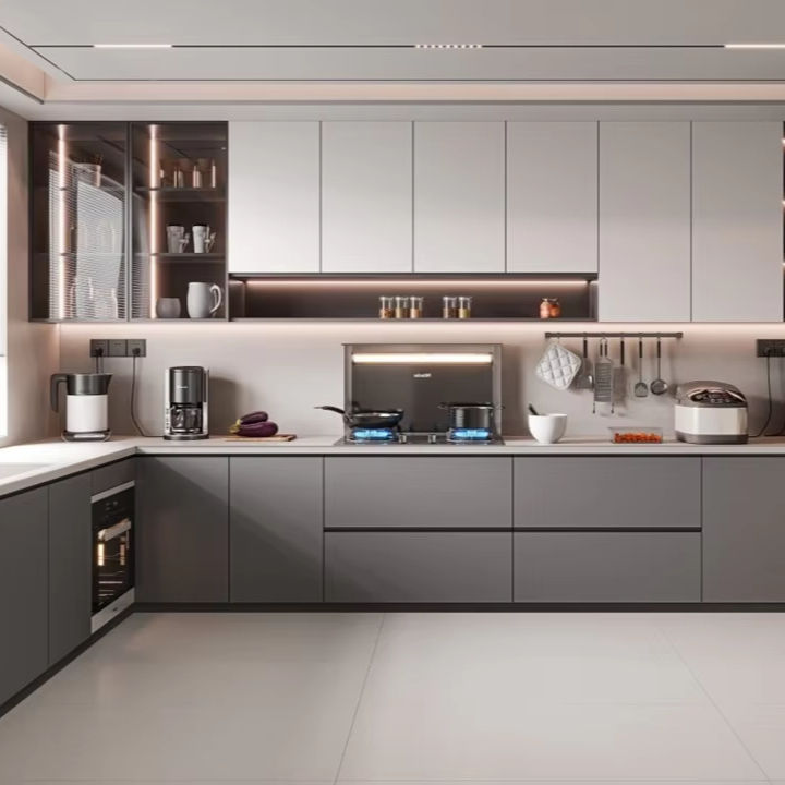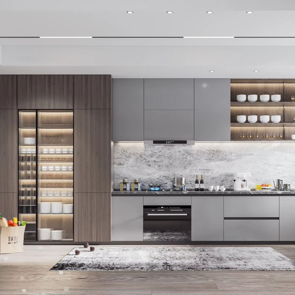 Meubles de cuisine personnalisés JY Project pour la décoration d'appartements, armoires en MFC, MDF, contreplaqué, RTA, îlot de cuisine en bois avec éclairage LED
