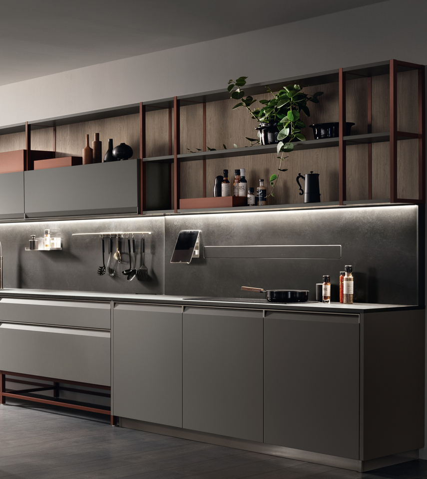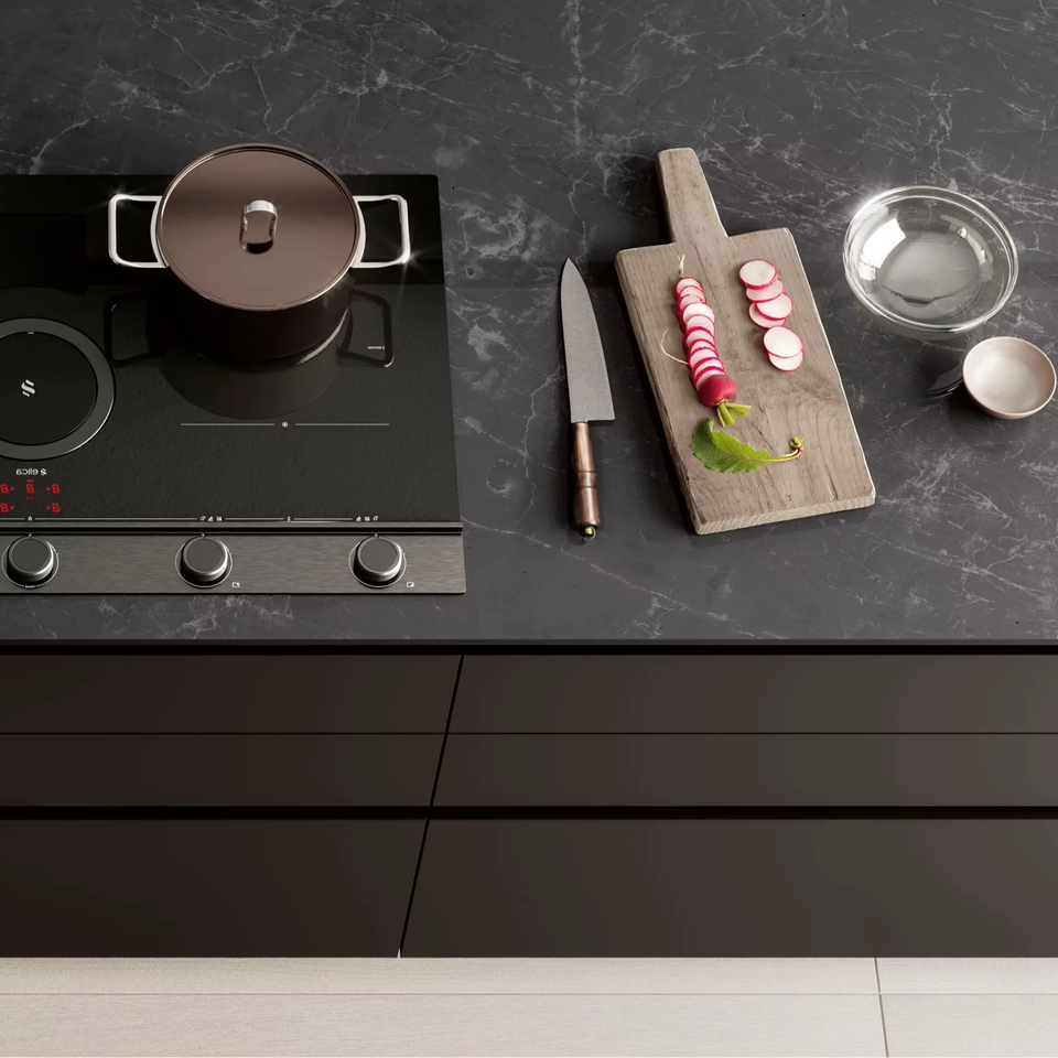 Cuisine modulaire en forme de L avec porte laquée sans cadre, écologique et moderne, personnalisée par JY Project, style vietnamien