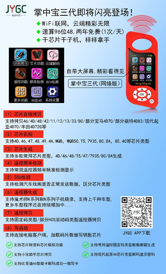 JYGC Handy Baby III-Copieur de clé de voiture portable Programmeur de clé automatique Handy Baby 3 pour 4D/46/48/G/King/Red Chip Copy G/96bit 48 Chip