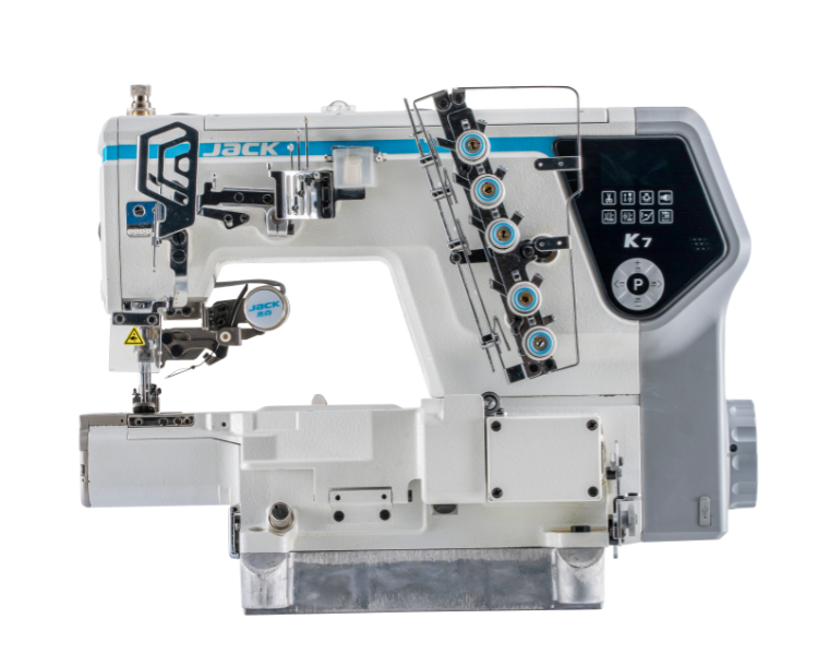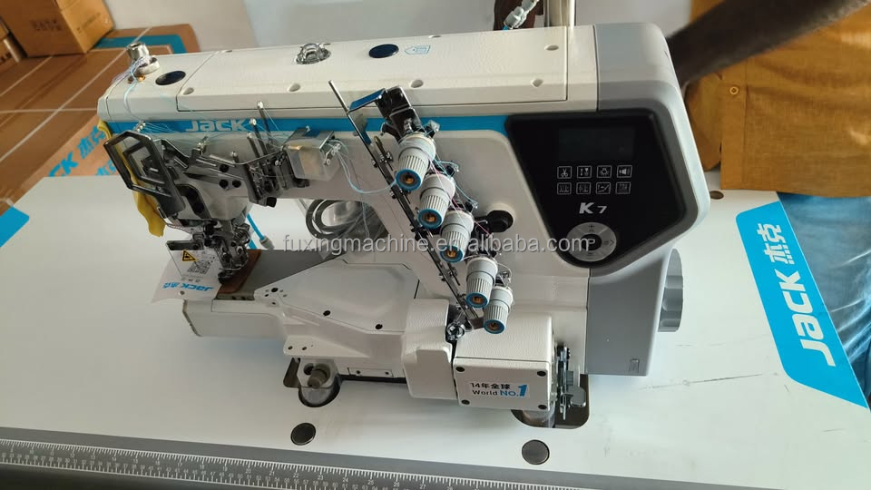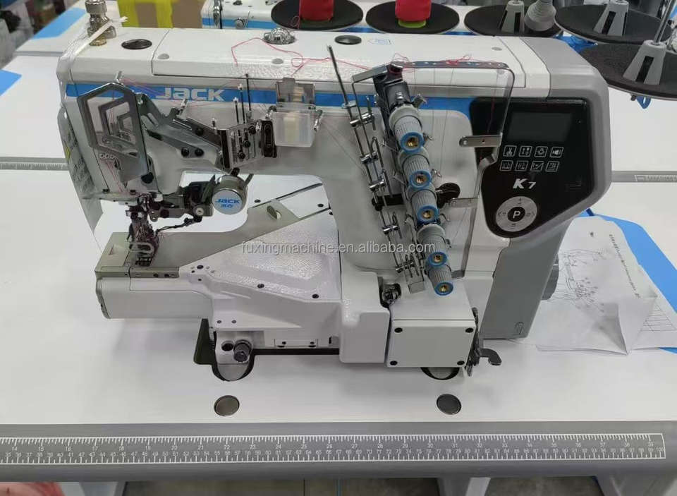 La machine à coudre industrielle Jack K7 à trois aiguilles et cinq fils peut détecter les changements d'épaisseur du tissu