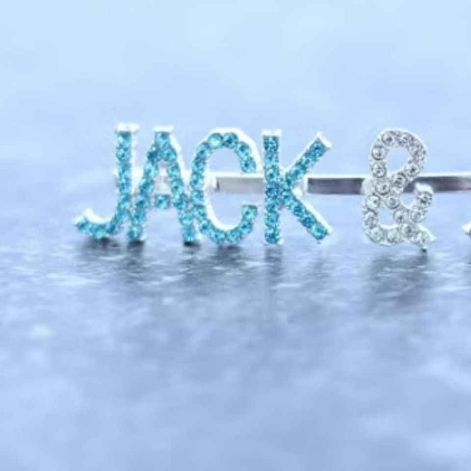 Barrette à cheveux en strass Jack and Jill, barrette à lettres en cristal, accessoire de cheveux scintillant et tendance pour femmes et filles, cadeau
