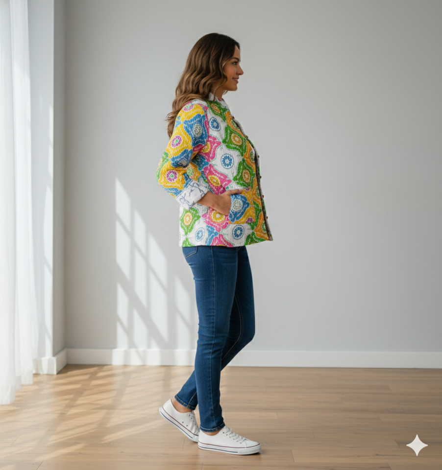 Veste en coton matelassé à motif floral, respirante, décontractée, avec logo, écologique