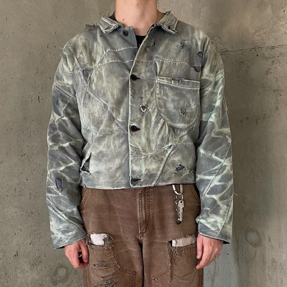 Veste de travail en toile de canard brodée sur mesure, lavage délavé, réversible, vêtements de travail faits à la main, motifs brodés