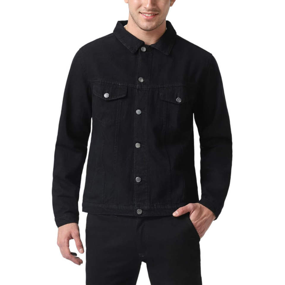 Veste en jean pour homme, coupe classique, faible MOQ, qualité supérieure, livraison rapide, design boutons dissimulés sur le devant, logo personnalisé, OEM