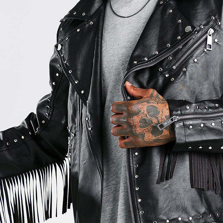 Vestes personnalisées avec détails de franges cloutées Vestes de motard élégantes pour hommes