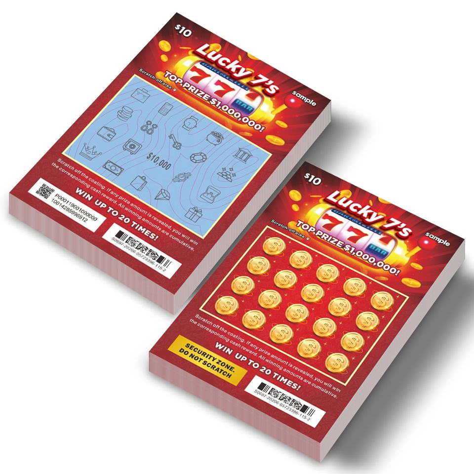 Loterie à gratter Jackpot, personnalisée, chanceuse 777, conception gratuite, papier noir, impression numérique, gagner en grattant