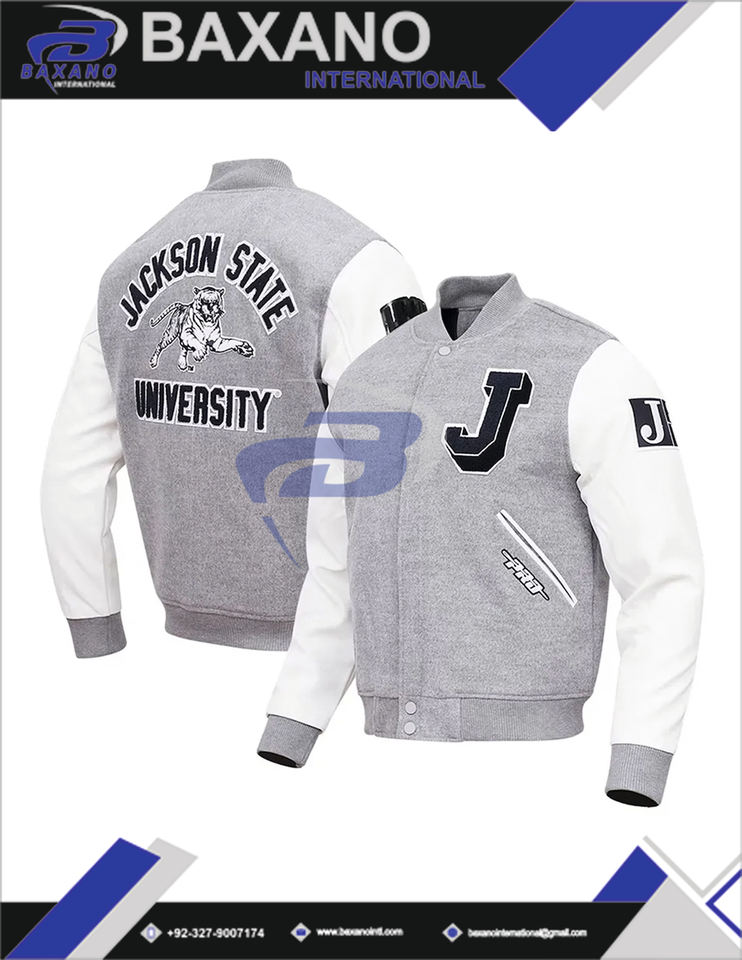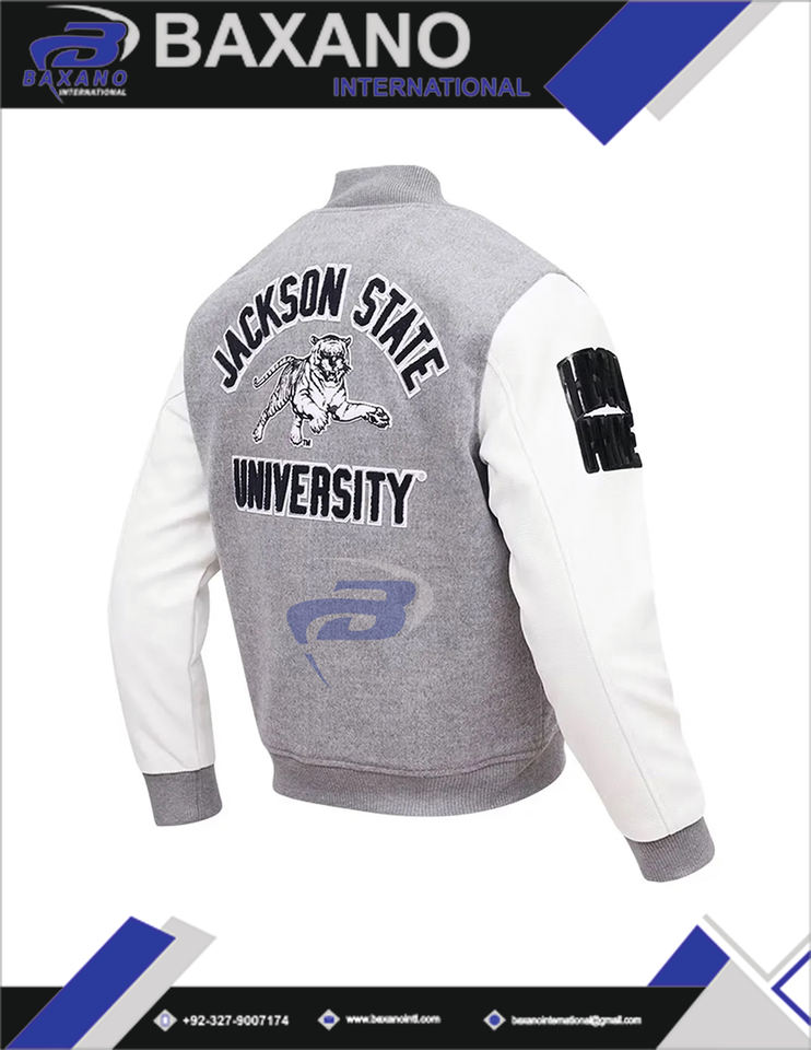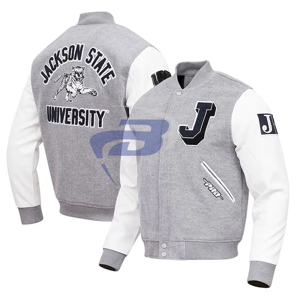 Veste universitaire Jackson State University (JSU) style baseball rétro, veste bomber universitaire unisexe, logo personnalisé, patchwork