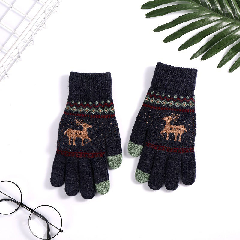 Jacquard Knitted Touch Screen Gloves Deer Pattern Winter Mittens Warm Double-Layer Acrylic for Sports Cycling Fishing Daily Use