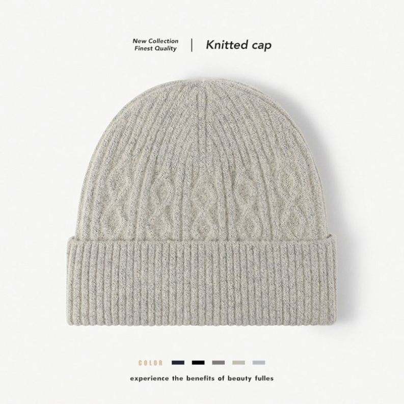 Bonnet en tricot Jacquard Light Board Plus Fluff pour grande circonférence de tête, idéal pour l'extérieur, chaud et en laine, vente en gros