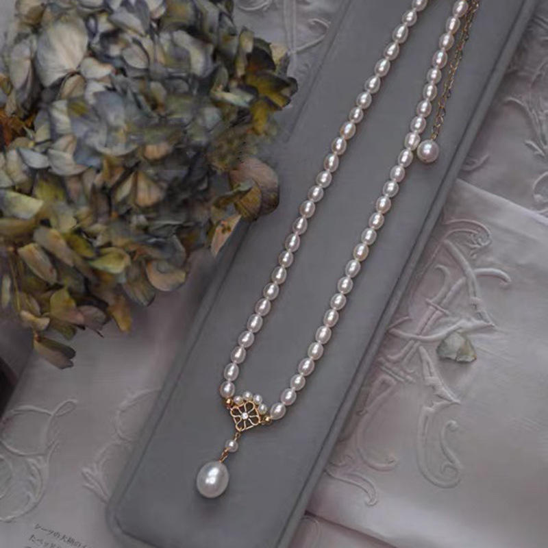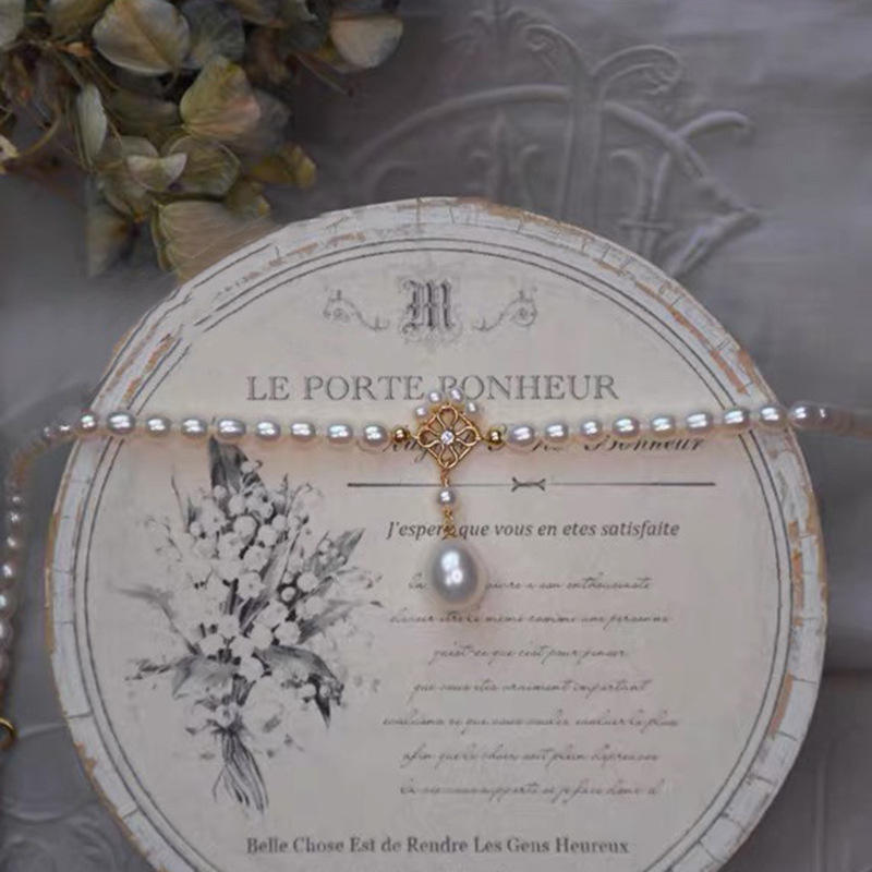 Jade Chalcedony Female Four Leaf Grass Retro Green Temperament Pull-Out Neck Clavicle Chain Luxury Retro Fine Choker Necklace