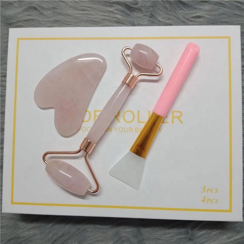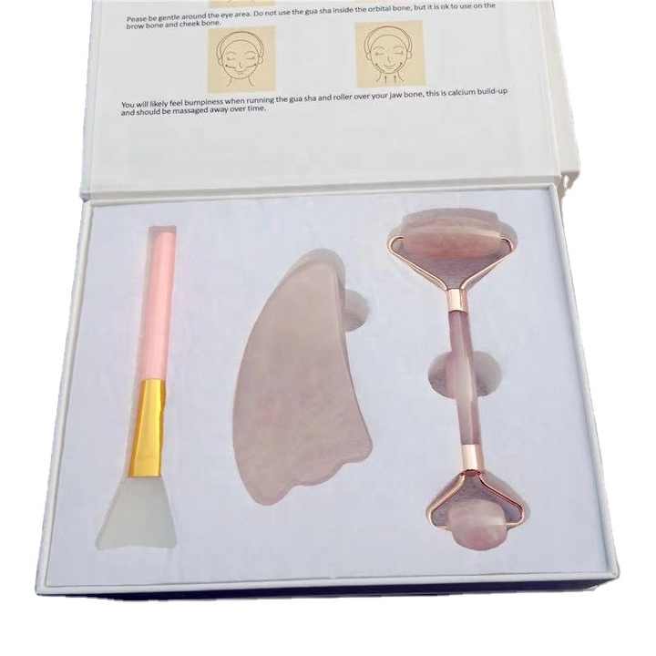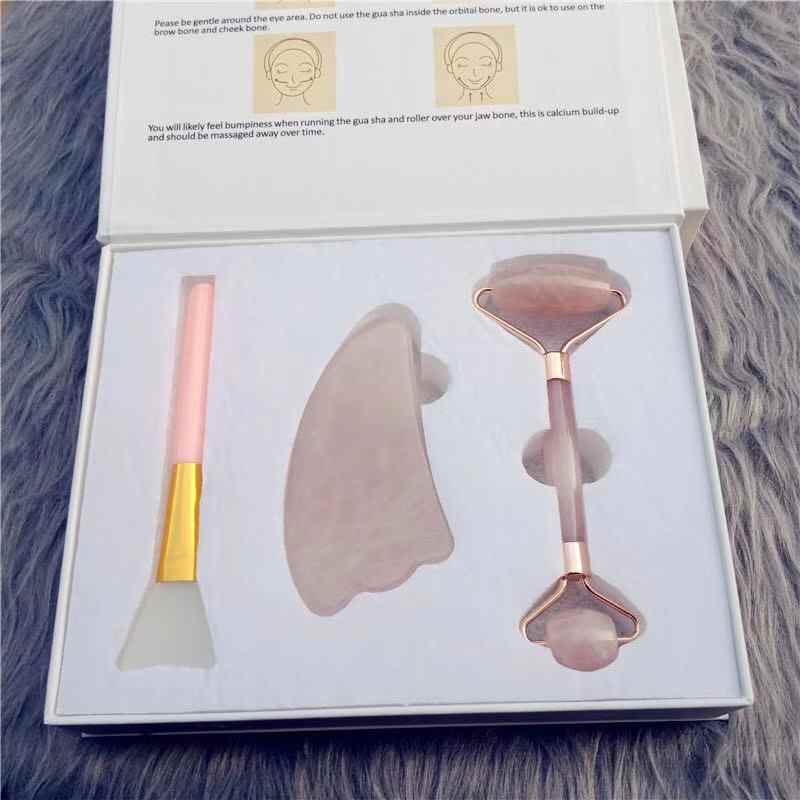 Jade roller gua sha set with Silicon Brush Facial Anti Aging For Face with Gift Box