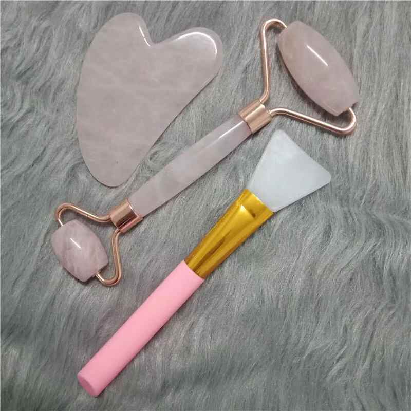 Rouleau de jade gua sha ensemble avec Brosse De Silicium Visage Anti-Vieillissement Pour Le Visage