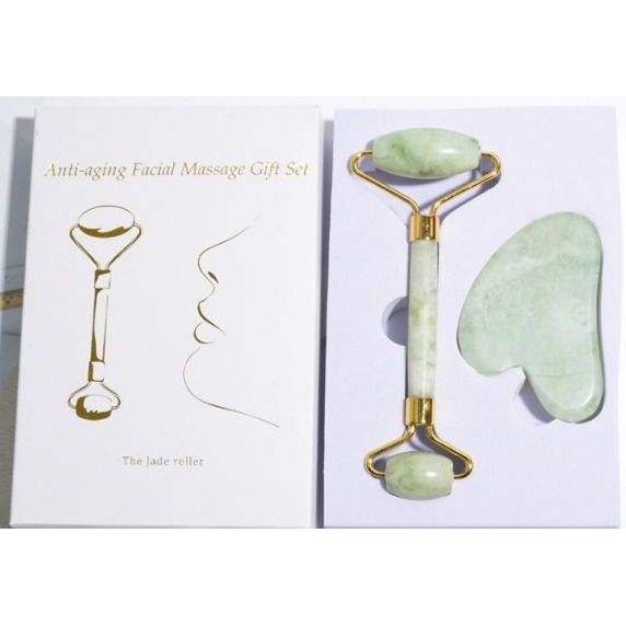 Ensemble de rouleau de jade et de Gua Sha dans un coffret cadeau d'artisanat en cristal