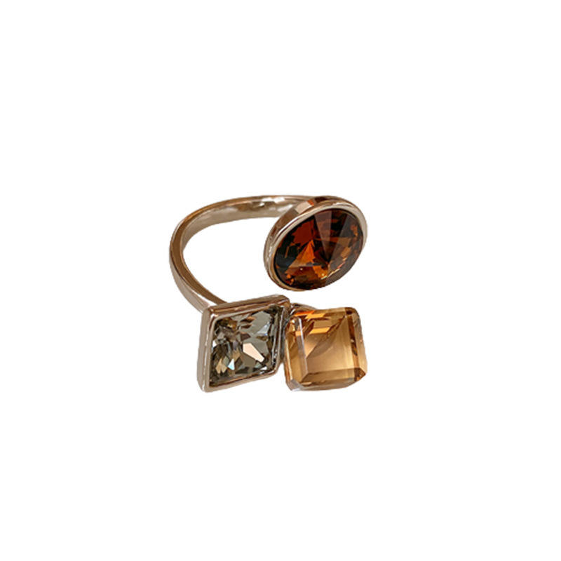 Bague en pierre précieuse réglable en forme de cercle carré en jade avec finition plaquée or, style vintage pour femmes