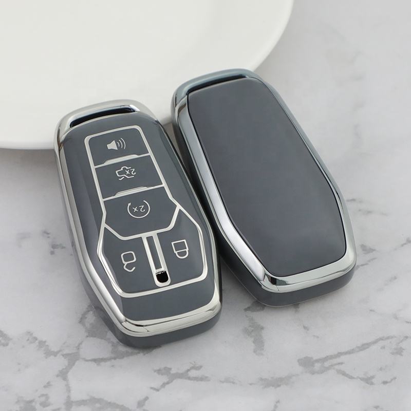 Housse de clé de voiture Jade TPU avec porte-clés adaptée pour Ford Fusion Mustang F150 Edge Explorer Lincoln MKZ 5 boutons porte-clés de voiture