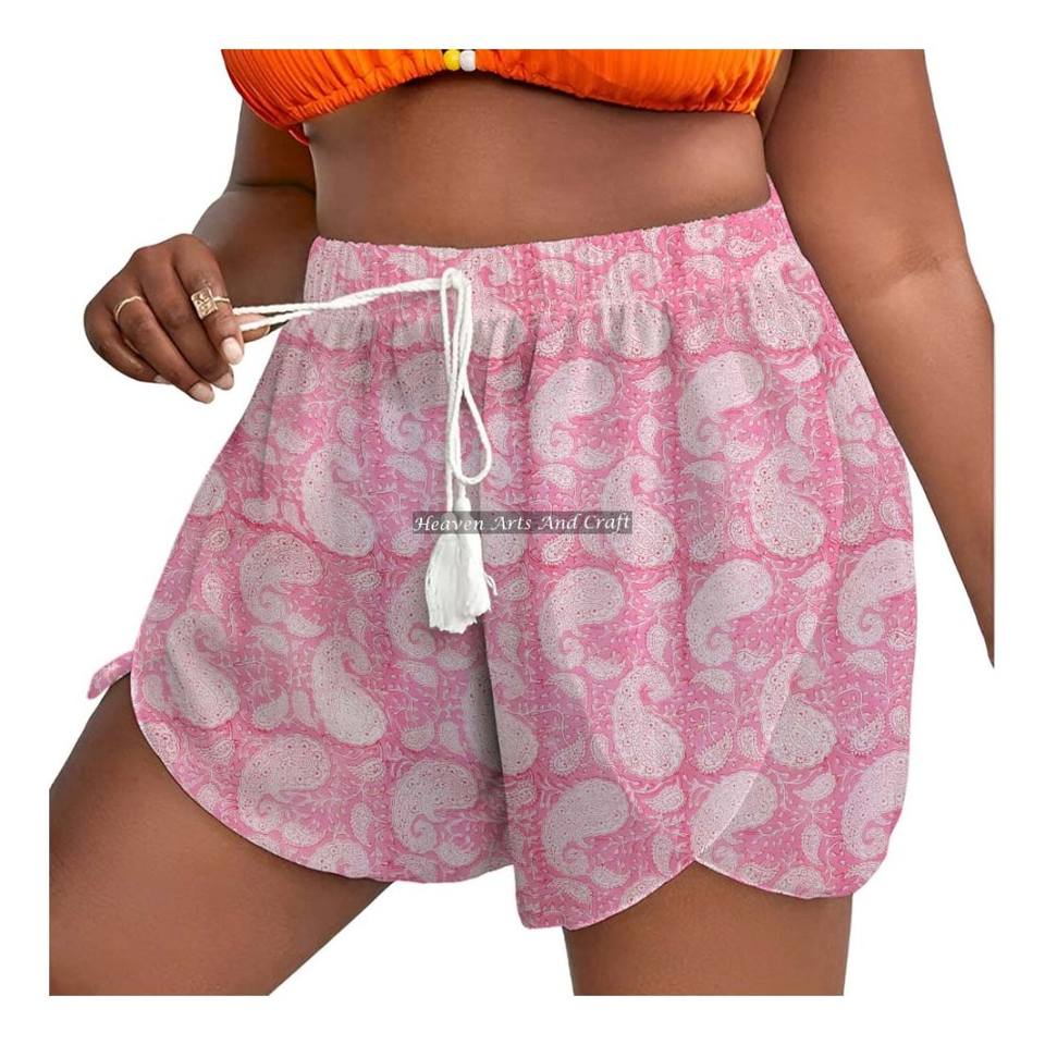 Shorts en coton imprimé au bloc de Jaipur pour femme, avec cordon de serrage à la taille, style décontracté d'été