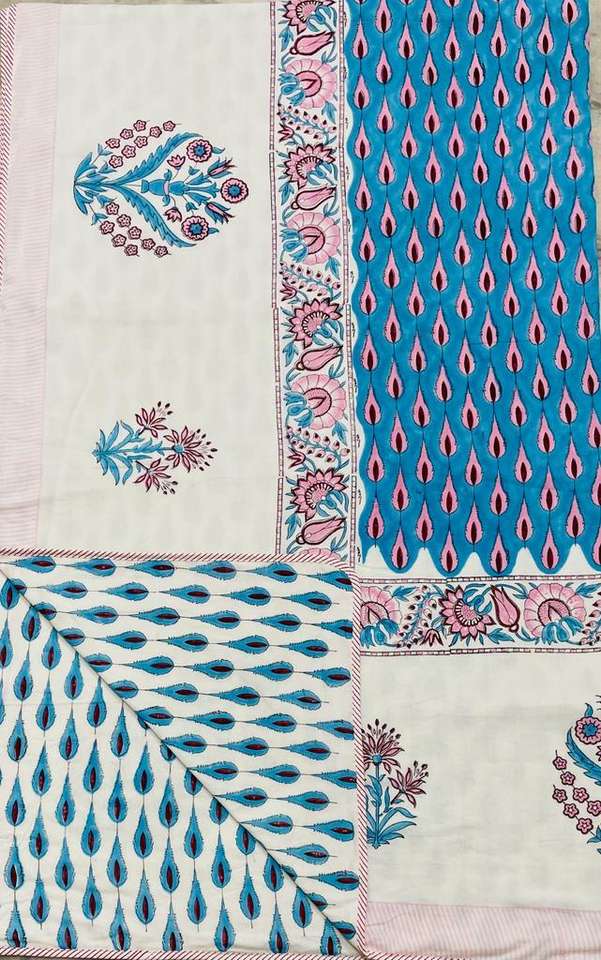 Jaipur Main Bloc Imprimé Réversible Doux Coton Lit Simple Dohar Artisan Made Traditionnel Fabriqué À La Main 100% Coton Dohar