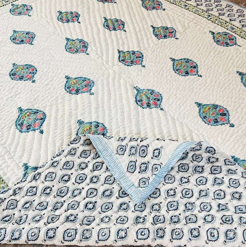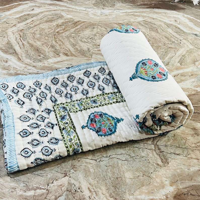 Jaipuri bloc imprimé couette imprimé réversible Razai coton fait à la main couette florale Bespread couette
