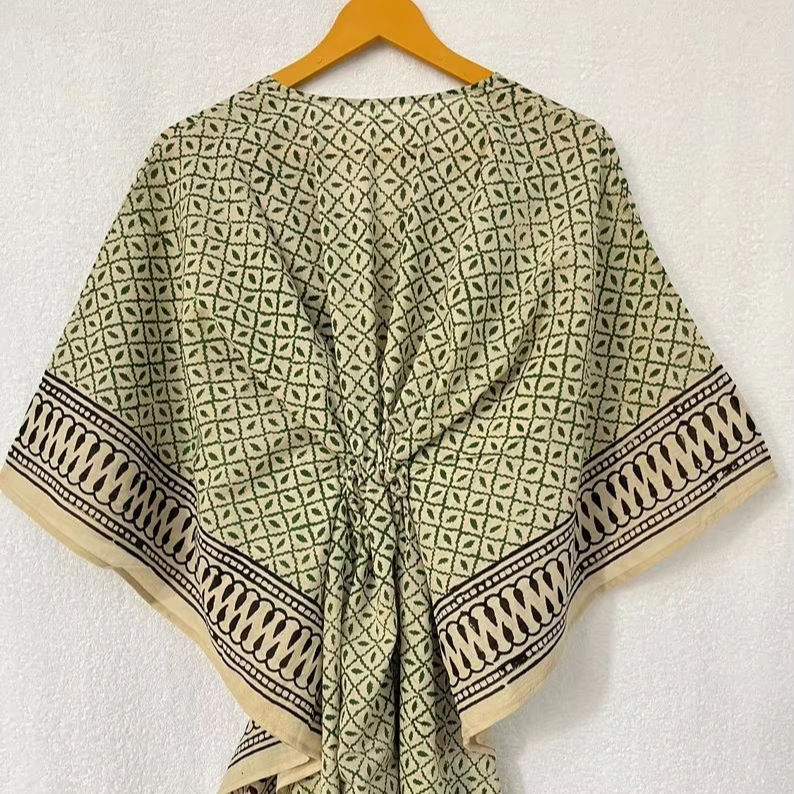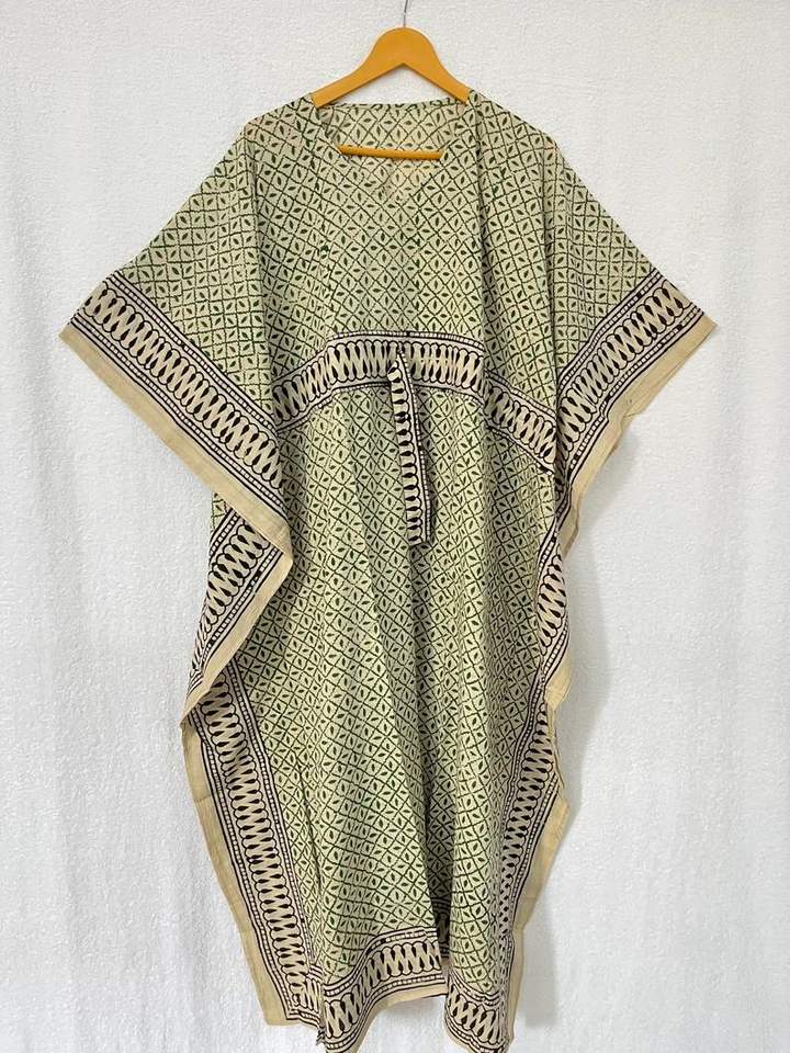 Jaipuri Hand Stamped Women's Cotton Tunics Nighty Gown Bagru Block Print Kaftan Beach Maxi Dress for Casual or Bridesmaid