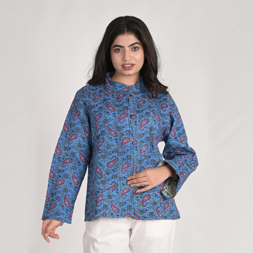 Indian cotton winter jackets:Handmade Cotton kantha Reversible Jackets