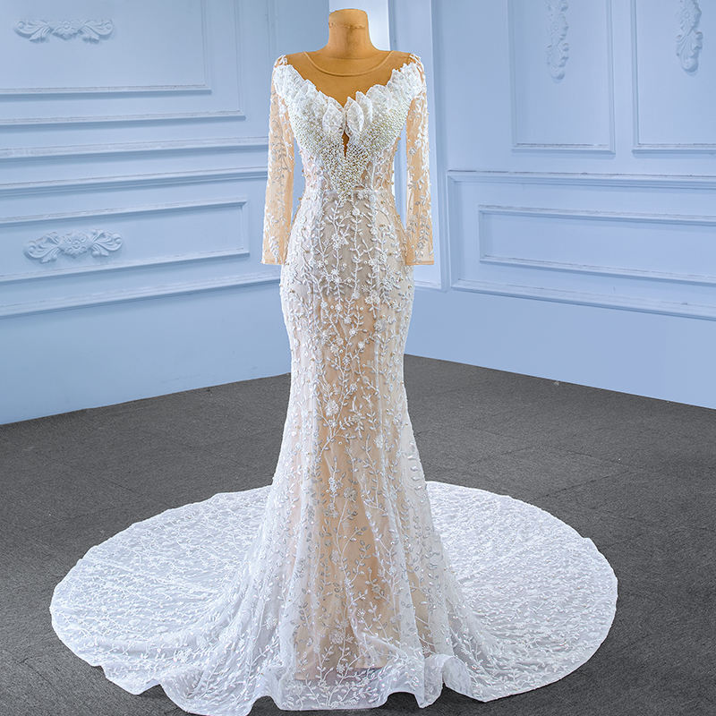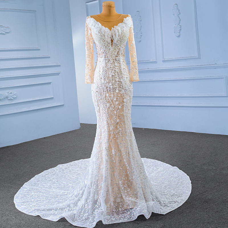 Jancember 222196 Luxury Pearls Illusion Wedding Gowns Mermaids With Train