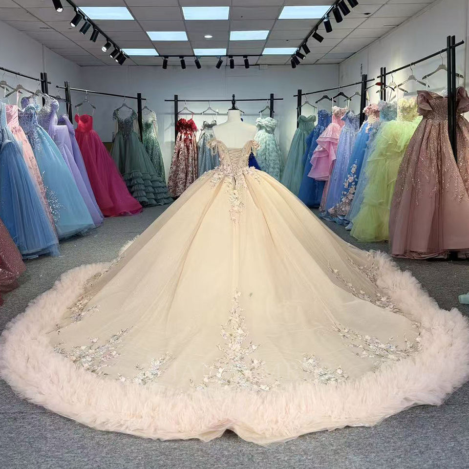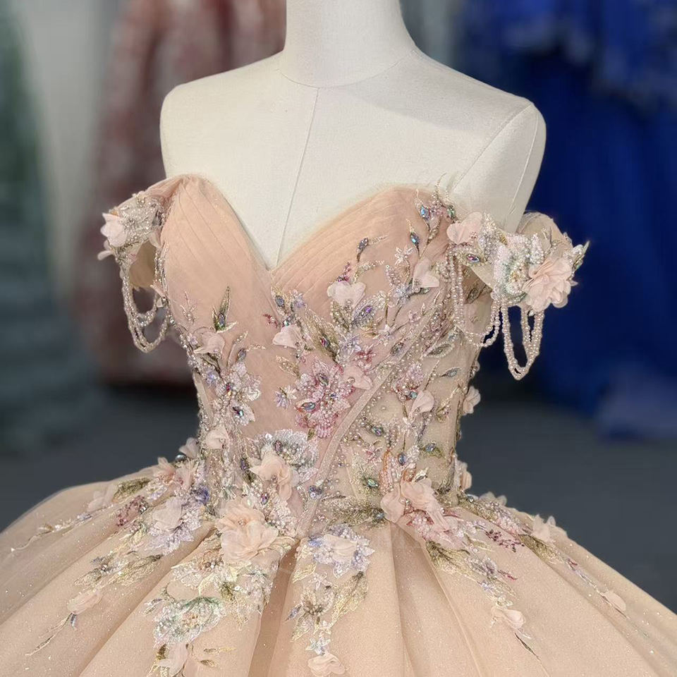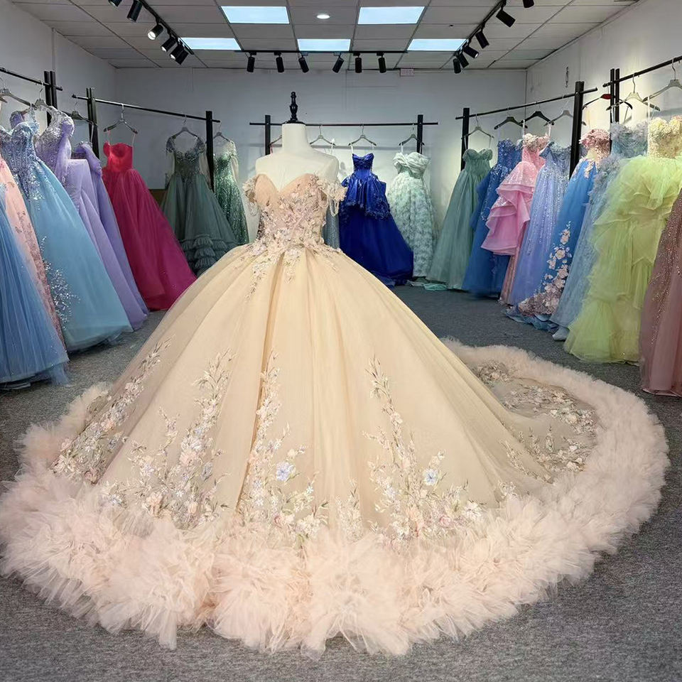 Robe de soirée de débuts Jancember 6923 Princess Sweetheart champagne à volants avec fleurs