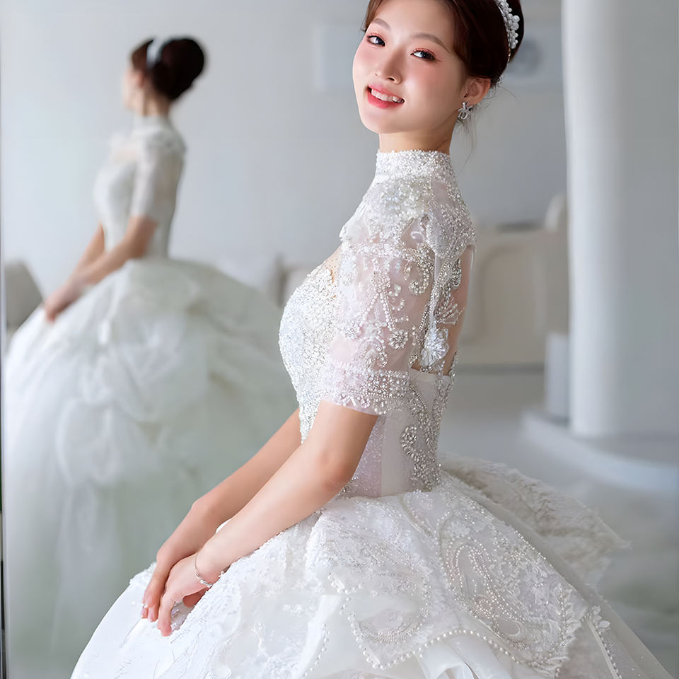 Jancember LSHT031 Crystal Luxury Short Sleeve Bridal Wedding Ball Gown Dresses