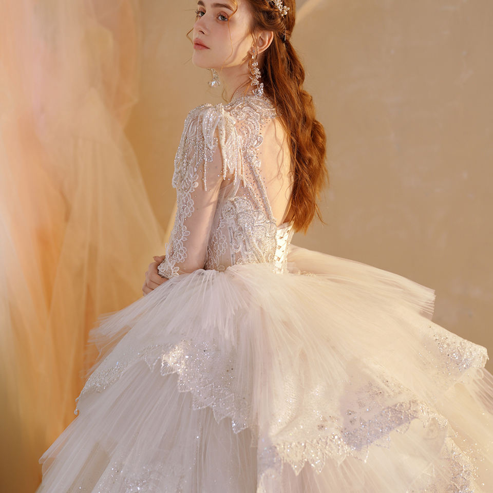 Jancember LSMX042 Robe de mariée bouffante moderne à col en V pour femme