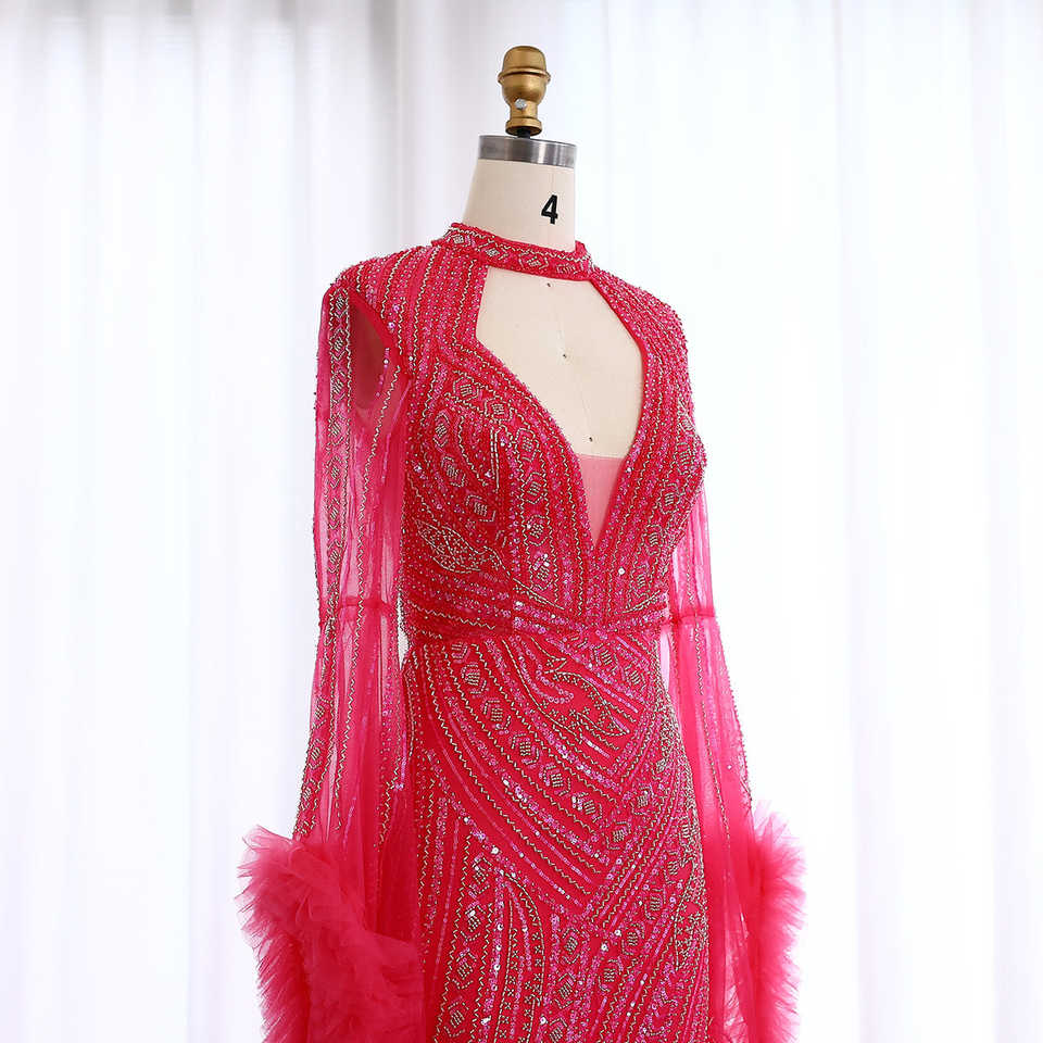 Jancember LSZ020 Robes de soirée de bal de promo élégantes fuchsia à col haut pour femmes