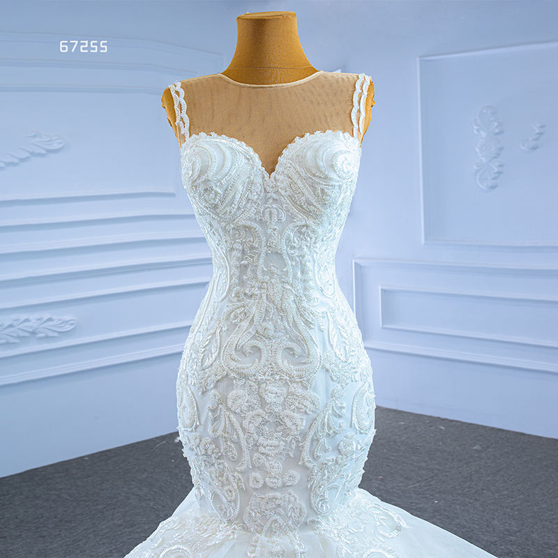 Jancember RSM67255 Robes de mariée sirène froncées sans manches brodées