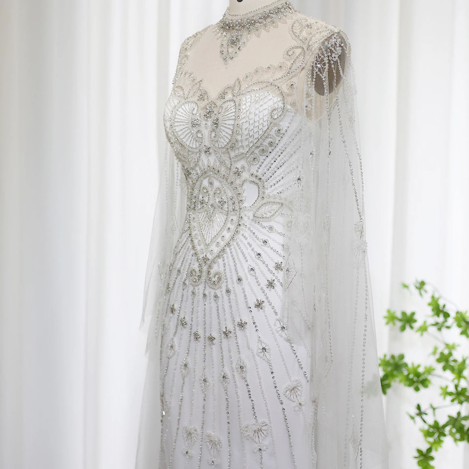 Jancember SZ014 Elegant White Slim Sequins Mermaid Prom Dresses for Girls