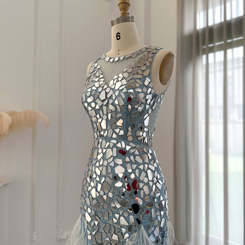 Jancember SZ124 Crystal Sleeveless Zipper Feather Women's Evening Party Dresses