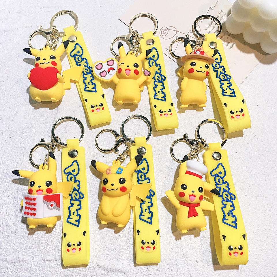 Japon Anime dessin animé 3d Pvc Anime Pokemoned porte-clés voiture porte-clés sac en caoutchouc Pikachu poupée pendentif porte-clés en gros