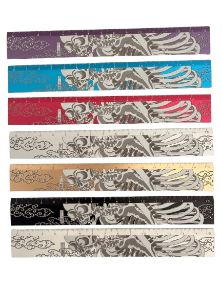 Règle de mesure en aluminium pour l'école, motif japonais complexe et effrayant, imprimable