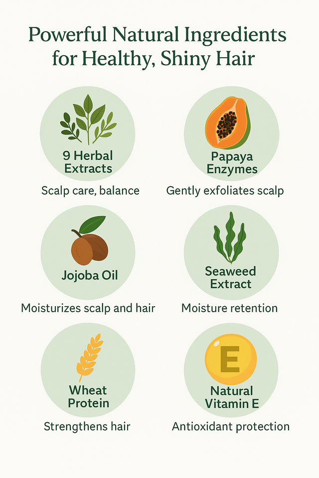 papaya enzyme, 9 herbal extracts, seaweed extract, jojoba oil, olive oil, vitamin Eingredient