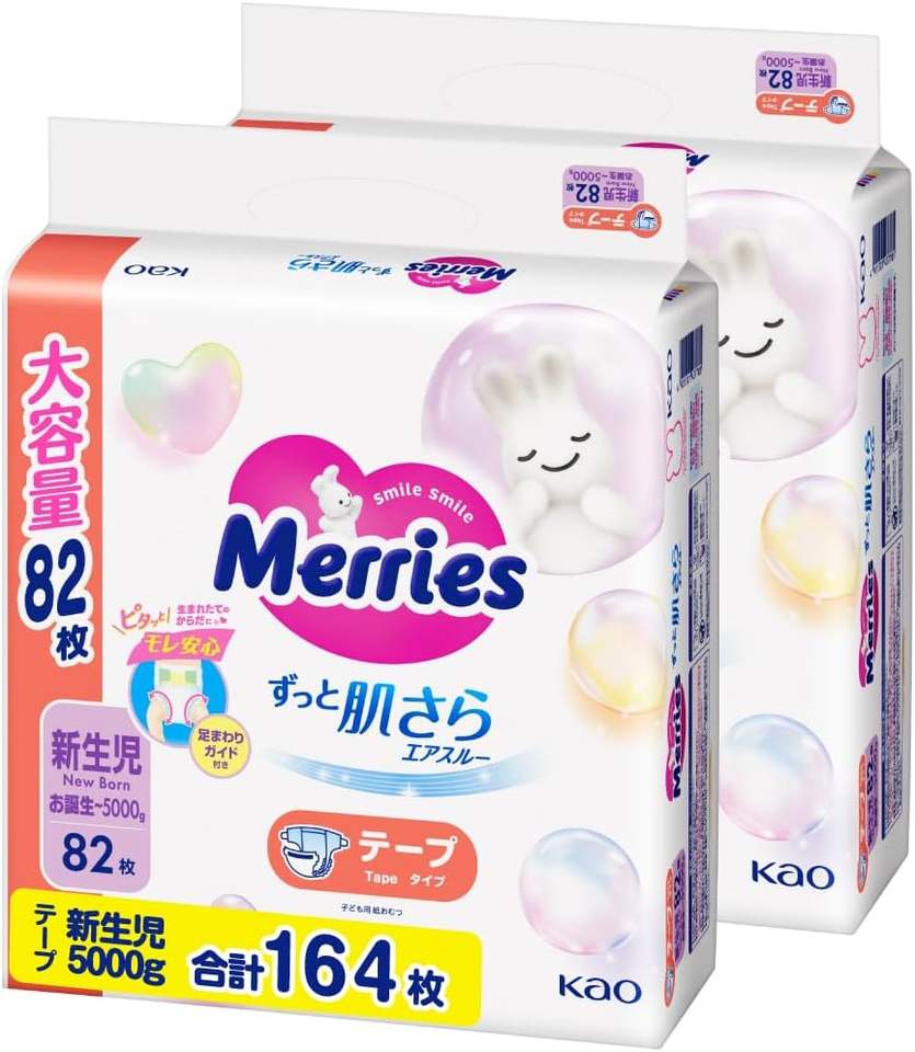 Couches-culottes jetables pour nouveau-nés KAO Merries Jumbo Pack, originales du Japon, 82 pièces, pack économique, fabrication limitée au Japon