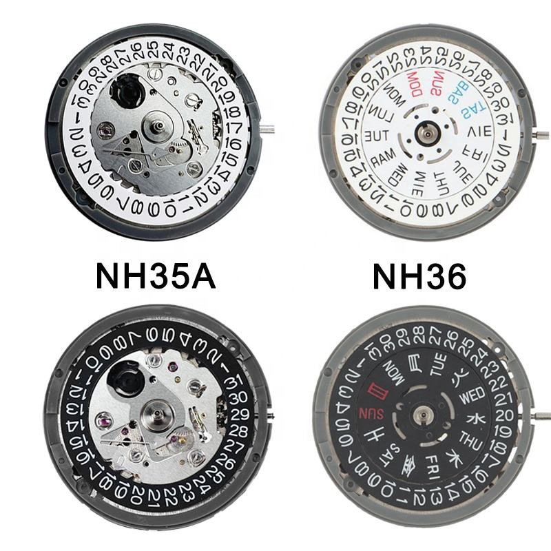 Mouvement automatique japonais d'origine NH35, 24 rubis, avec fenêtre de date noire, mécanique à remontage automatique, calibre NH35A.