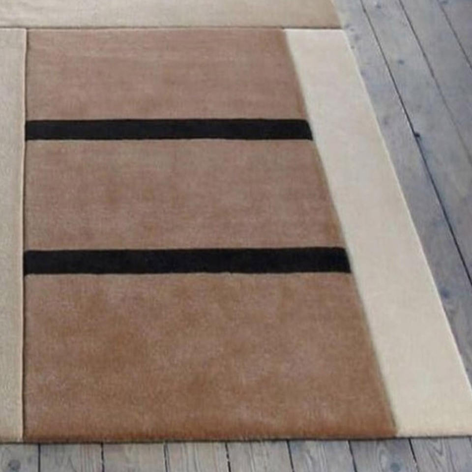 Tapis d'intérieur esthétique Japandi | Tapis abstrait linéaire neutre couleur sable et marron café | Tapis minimaliste à blocs linéaires pour la décoration intérieure