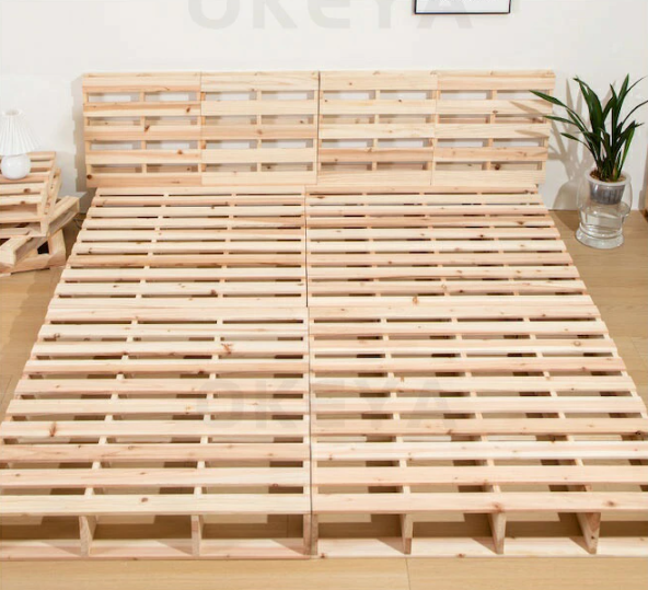 Lit plateforme en bois massif à lattes de style Japandi - Cadre de lit au sol à profil bas pour des chambres sereines