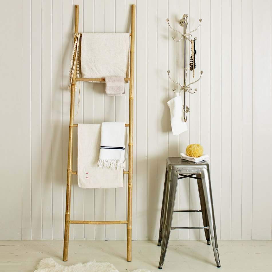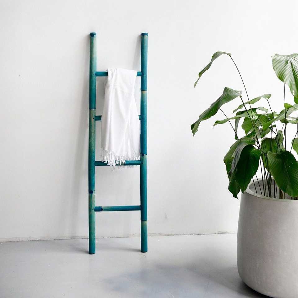 Échelle en bambou massif style Japandi, pièce décorative minimaliste, écologique, robuste, pour couvertures et serviettes.