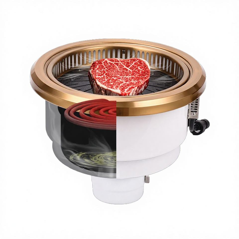 Grill électrique commercial japonais 2500W en acier inoxydable avec revêtement en poudre, faible fumée, intégré, pour restaurant